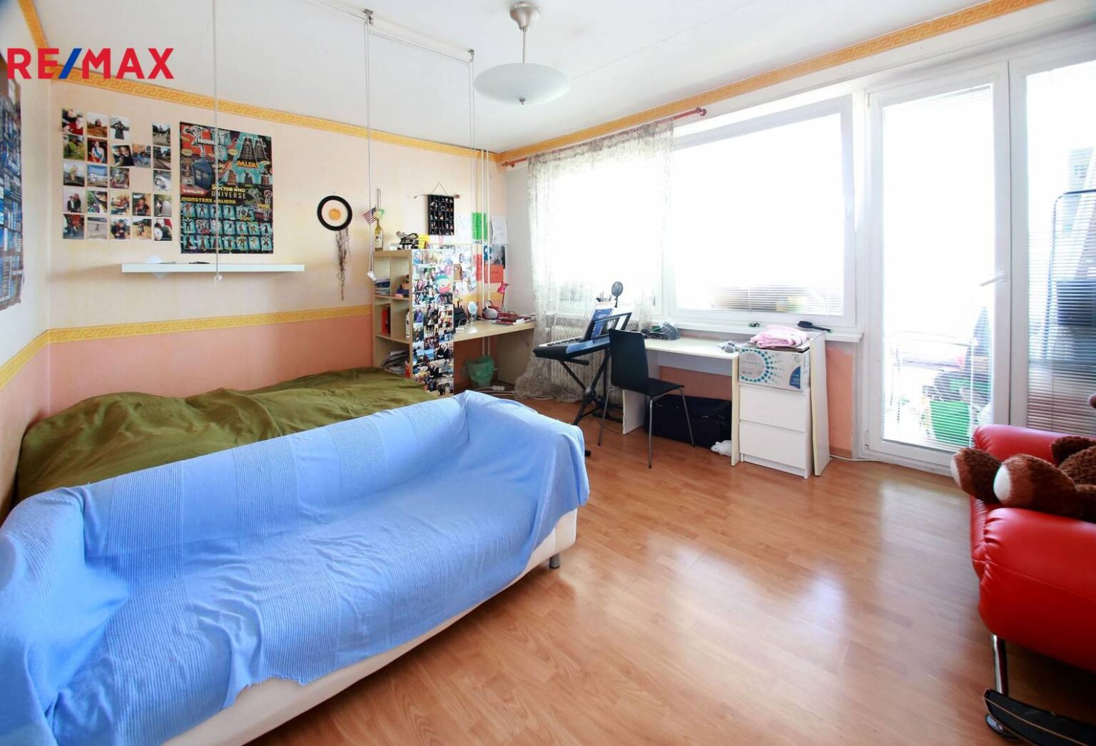 Obývací pokoj 19,4m2 se vstupem na zasklenou lodžii (6,6m2), s volným výhledem.