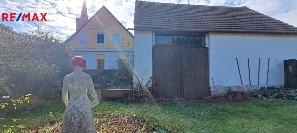 Velkoryse řešený, prostorný dům z roku 1830 byl původně dispozičně řešen jako dva samostatné byty. Je částečně podsklepený, postupně bylo upraveno pro bydlení i podkroví. Dům se zachovalými původními prvky se stodolou a přilehlými hospodářskými drobnými stavbami tvoří uzavřenou část s altánem a dokonalým soukromím. Budovu je možné dispozičně měnit dle vlastních potřeb. Za stodolou je rozlehlá zahrada 383m2. Zastavěná plocha domu je 163m2, s přilehlými stavbami 515m2.