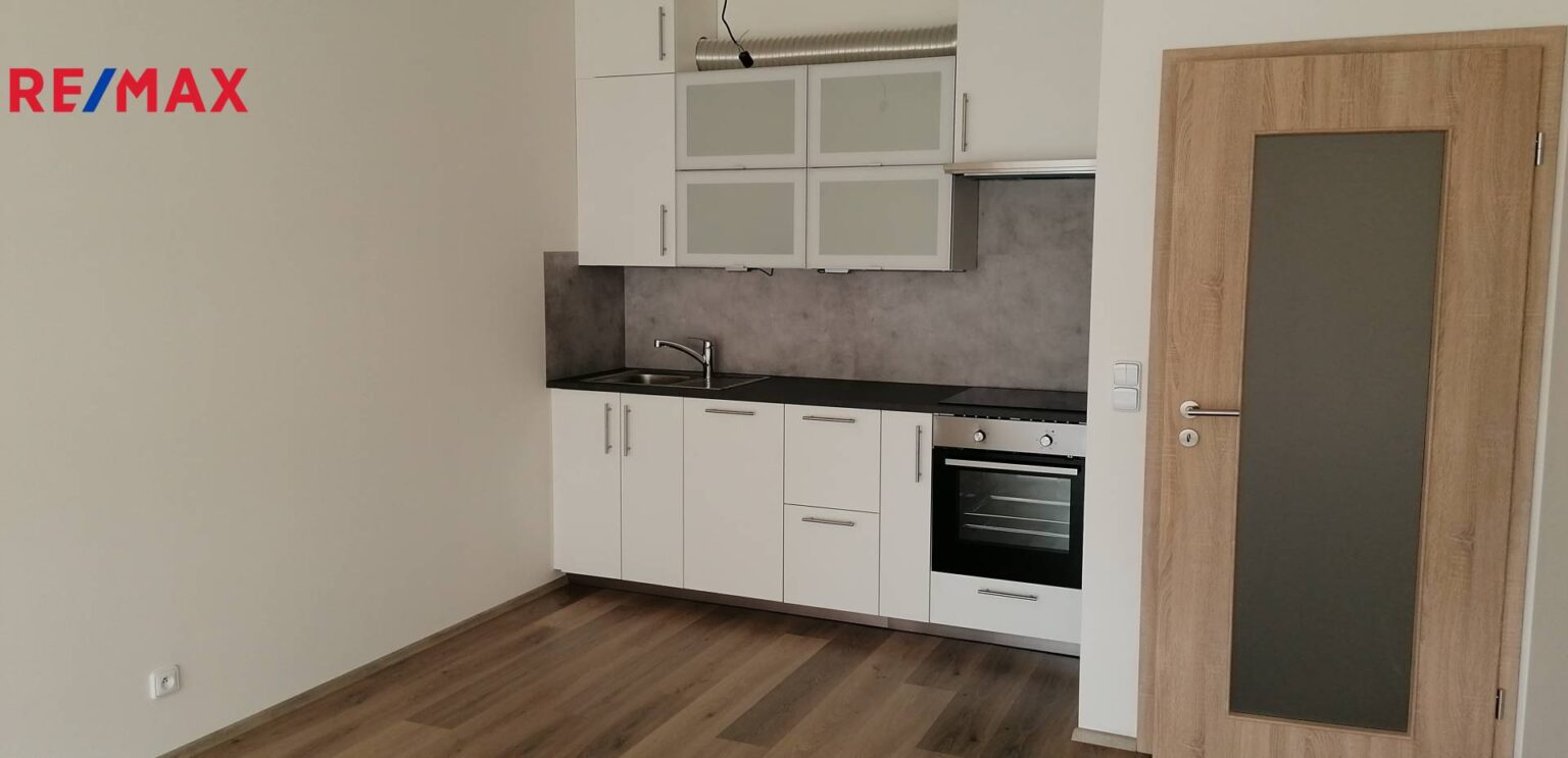 V bytě koupelna s vanou a WC. Pěkná kuchyňská linka včetně varné desky, horkovzdušné trouby a myčky.